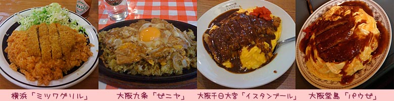二軒目は住宅街・千日大宮の「イスタンブール」(2011年5月)。とろふわオムライスのデミグラスソースがけにカツのトッピング。訪ねたのが、ちょうどテレビで紹介された直後で大行列に往生したのも思い出だが、もしかしたら、それでブームに火がついたのかも知れない。現在、大阪に「イスタンブール」タイプのトルコライスを供する店は何軒もあるらしいのだ。