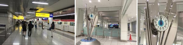 京急線の羽田空港・国際ターミナル駅で三々五々、下車する人たち。時計が示す時刻は0時。昼ではない、深夜の0時です。
