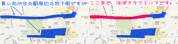 台北駅からMRTで一駅・というか地下道を歩いて行ける中山駅は、さらに次の駅までの地下道が延々書店街になっている、一部の人だけ喜びそうなスポット。