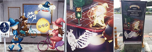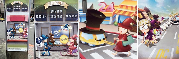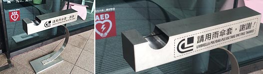 「小心行走」と注意を喚起するピクトさん、滑りかたがダイナミックだ(台北の他の場所で見かけるピクトさんは概ね普通でした)