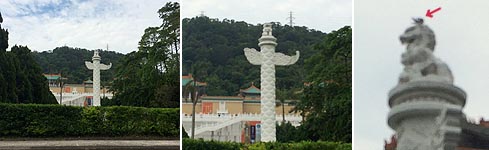 かなり市街に近くなったあたりで、車道の左側に見えた仏教の寺院とも道教の廟ともつかない建物のフロントに「に