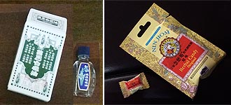 コンビニで普通に売ってる「萬應白花油」は一番小さな3mlの小瓶が58元(約220円)。ミント・ユーカリ・ラベンダーなど各種エッセンスを配合した精油で、痛み止めや痒み止め・リラックスなどに使われる由。