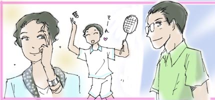失恋寸前の三々を励ますべく(?)バドミントンに興じる世話焼きデザイナーとゲイ仲間たち。