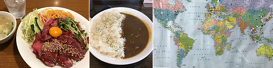 自分が泊まった簡易宿泊所も、部屋は畳二畳分くらい・バスもトイレも共同だけど(ただし近所の銭湯の無料券が貰えて、良い宿でした)トイレはウォシュレット完備・部屋もWi-Fi完備。1階のロビーに貼られた世界地図には、アジアはもちろんアフリカや南米(画像ではカットしたけど)グリーンランドまで、宿泊者のホームを示すシールが。