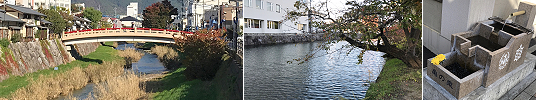 駅から城までの間を東西に一本、川が通っている。街のあちこちには用水路、そして和風に昔を模した水飲み場が設けられており、至るところを水が巡っている快い印象を受けた。かつては城下町で木造建築が多く、防火が喫緊の課題だったのかも知れない。