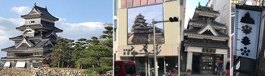 もちろん松本城への愛着は一番で、繁華街のなかに松本城の巨大なパネルを掲げた建物があったり、松本城を模した古本屋があったり。