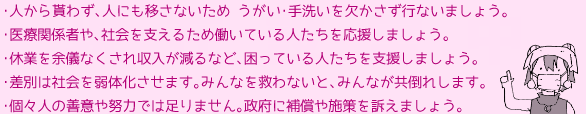 ご意見募集(首相官邸に対するご意見・ご感想)←「公金投入を惜しまず医療従事者にマスクや防護服の供給と危険手当を!」みたいなことを書くと良いと思います。