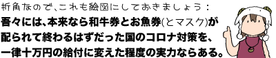 本来なら和牛券とお魚券(とマスク)が配られて終わるはずだった国のコロナ対策を、一律十万円の給付に変えた実績がある。