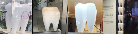 むしろ数もバリエーションも豊富なのは奥歯のシルエットを描いた二次元のディスプレイだ。