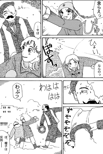 「まさか本当にキスとか都合いいこと期待してなかったでしょ?」our traveling fiesta移動する祝祭 (ペーパー漫画総集編2005〜2008+) 2008.08発行 A5版 100ページ 500円+送料 250円+税(BOOK WALKER)[収録作品] 五人目はつらいよ/もしもあの人が高所恐怖症だったら/すべてはo.k./夏色のナンシー/夏色のナンシー[反省篇]/garden/++/二角取りもしくは神経衰弱/ボクらの夏休み(including "too much is not enough" and "let me see you stripped")/旅の王様とクローディアの秘密/she does magic/because your kiss/無敵のカード(君はハートのクイーンだよ)/大寒行進曲(おおさむマーチ)/Rainy Days and Mondays/マタイいわく すべての後なる者は先に 先なる者は後になるだろう/二月三月/三月四月/メイデイ、メイデイ 『マイムラのみぢかいまんが』=赤盤に続く、ペーパーまんが総集編「青盤」。「ファンタジイの日常化」と「日常のファンタジイ化」本作収録の作品は主に日常的な世界を舞台にしながら、そこで起こる小さな魔法をフックにしたものが中心となりました。 「二角取りもしくは神経衰弱」Web公開中。 【短篇掌篇集・とにかく数読みたい人向け・内容軽め】 |