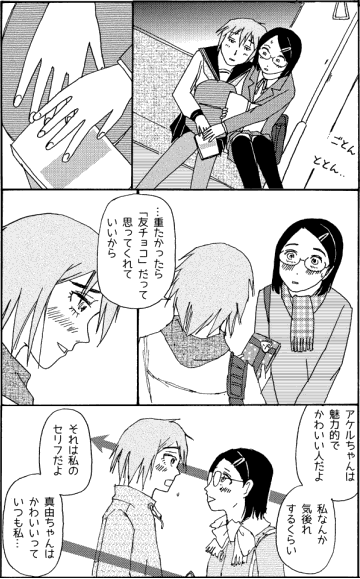 あなたがくれた、あなたを好きになる勇気。two of us 二人は恋人同士になれるかも知れない 2019.01発行 A5サイズ 74ページ 400円+送料 200円+税(BOOK WALKER)川上くんのお姉ちゃんは童顔メガネ・ 生真面目な高校三年生。 お父さんの小児科医院を継ぐ夢に向け 受験勉強一本槍だった彼女の前に 「写真で見て可愛いなあって」 一見チャラめの男装コスプレイヤー・ アケルちゃんが頬染めながら現れて… 意外なことに、冊子まるまる一冊単位で 百合というのは初めてかも知れない。 2017年の連作『神様のギフト』の スピンオフですが、前作を未読でも(たぶん)大丈夫。 無料配布のペーパーまんが+Webまんがで発表した 約40ページ (こちらで読めます)に ![]() 20ページ超・未発表の描き下ろしパート(そこそこエロチック)を加えた決定版。頑張りました。 【百合・ラブコメ・いちゃいちゃ】 |