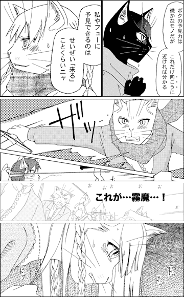 ヒア・カムズ・ザ・フラッド。FUTUREDAZE 5(6)フューチャーデイズvol.5. 【ワールズエンド・スーパーノヴァ(6)】 2016.02発行 A5版 74ページ 500円+送料 警鐘が〈花咲ける砦〉に鳴り渡る。 霧魔襲来。 「紛れもない凶事なのに 都の空気は少し浮ついていた クーデタ以来 初めての猫同士でない戦い 救世主コルネーリアが指南する 初めての戦いが始まるのだー」 焦燥。無力感。失望と疑念。 突撃。奇襲。同士討ちの悲劇。 妹たちの祈り。兄たちの無情。 あまりに細い肩に世界を背負わされ 偽の巫女王の心が折れるー これが戦争。これが政治。 これがFD。洪水は来た。もう引き返せない。 裏話:しかし今回のFD(ネタバレのため白抜き)リンドウやテリス、コルネーリアが「ブラック企業で断りきれずイヤな仕事ばかり押しつけられる」「アルバイト待遇で店長を任され重圧で限界」みたいで、こんな形で時代とシンクロしたくはなかった… |